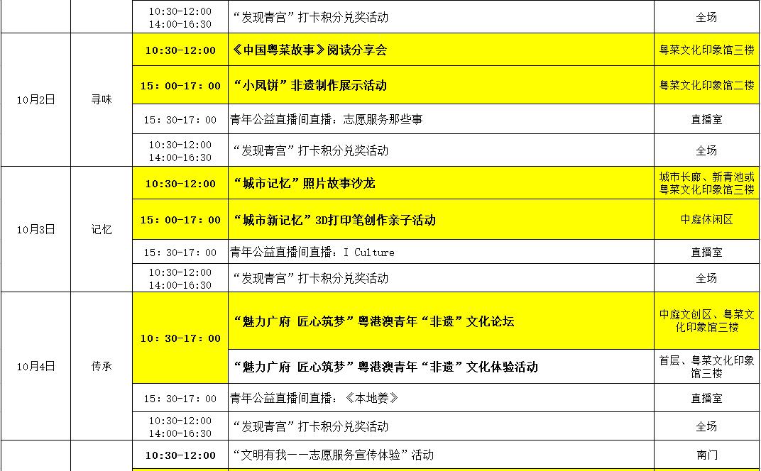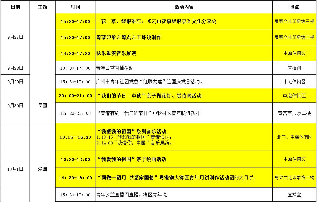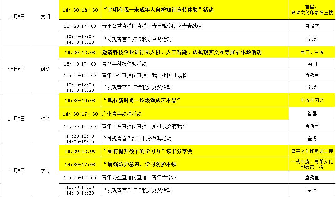 伴随着北京路的新装亮相开街,广州青宫也焕然一新,为你揭开神秘的面纱,将以全新面貌为青年服务。9月27日—10月8日9大主题30多场活动,文化论坛、音乐展演、青年联谊、非遗制作、汉服巡游、动漫活动……整整12天精彩不停歇,实力展现新时代新青宫新活力,一起来玩转青宫吧!