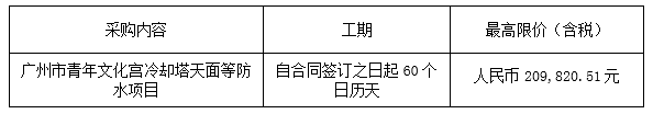 (1)标的名称:广州市青年文化宫冷却塔天面等防水项目