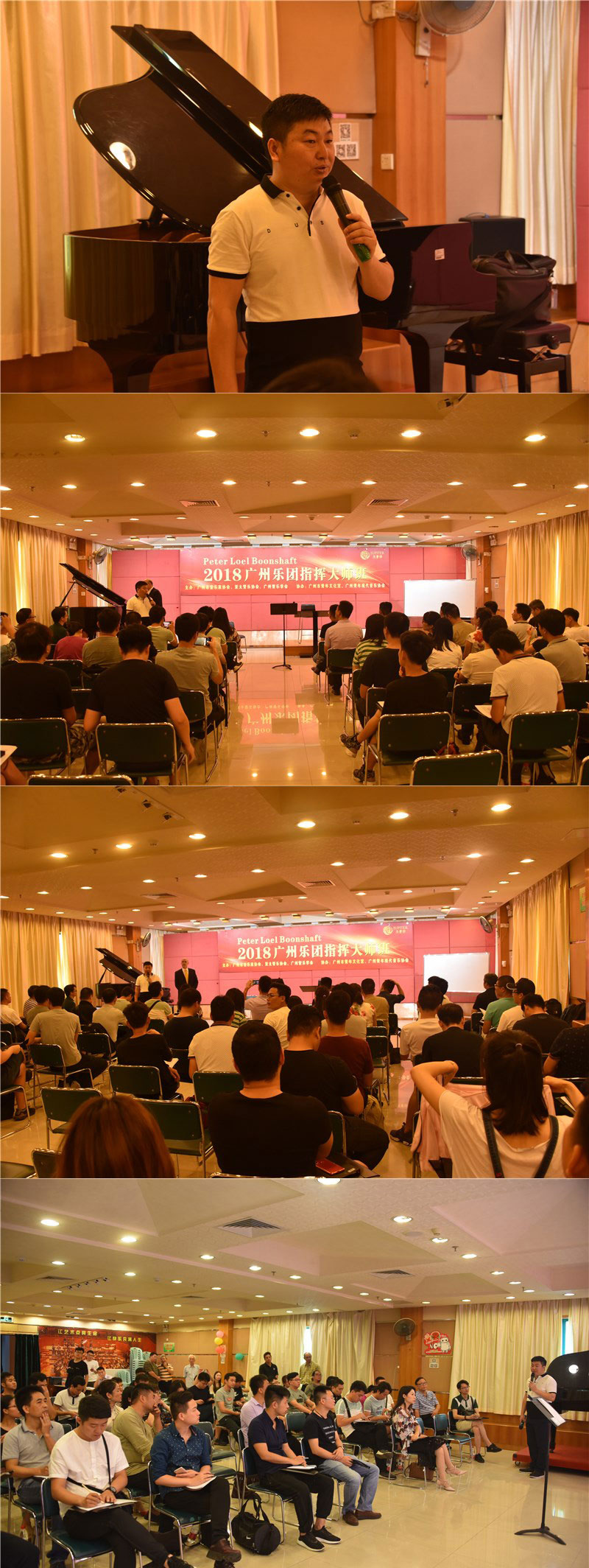 不少广东省的乐团指挥都慕名前来学习,彼得教授深入浅出地为大家讲授了管乐团的配器、管弦乐团作品的分级系统、乐团挑选作品的方法、教学法、指挥法等系列实用的讲学内容,细微之中可见大师底蕴,令现场学员受益匪浅。