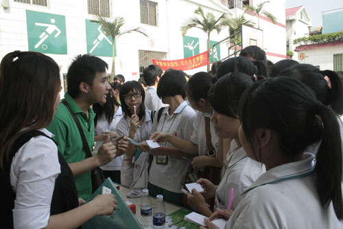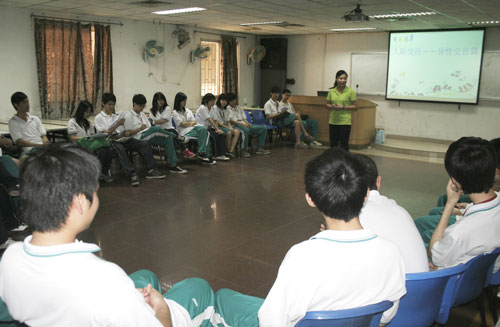 2009年的某项职场状况调查显示,半数80后畏惧在公开场合发言,90后仅半数愿与父母主动沟通。如何让正逐步成长为新一代社会中坚力量的80后、90后克服畏惧沟通的心理障碍,建立良好的人际关系,是社工们关注的另一焦点。活动过程中,社工站专职社工刘雪莲、实习社工赖莉丽分别为该校高职、中职的100多名同学带去了《爱的互动——高职生人际关系》、《快乐生活你我他——中职生沟通的奥秘与乐趣》两个参与式课程,引导同学们正确处理与异性之间、同学之间、朋友之间的关系,奏响“自爱—他爱—和谐共进”的“我爱我三部曲”