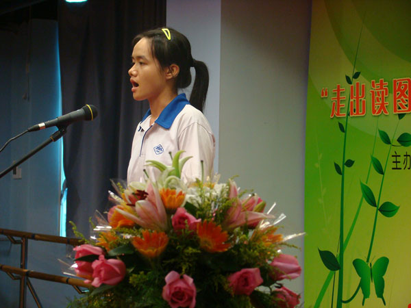 今天我获奖了,我对自己说:我成功了,我成功了。在这里,我要感谢我的启蒙老师周丽萍,是你让我开口说话,感受到另外一种表达心灵的方式的美妙。谢谢你!没有你当年对我的付出就没有我的今天。感谢我的母校和我的指导老师,没有你们,我就不会在这里发言了;还要感谢一直支持我、鼓励我的父母及朋友,谢谢你们。□
