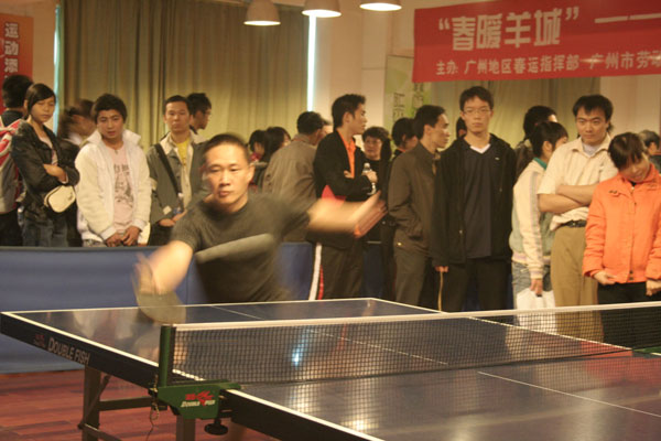 热闹、祥和,这是于1月6—7日在青宫乒乓球馆举行的“春暖羊城——广州市第四届外来务工人员迎春乒乓球赛”呈现的景象。外来务工人员在充满激情、友情的比赛中,在展现自己的乒乓球技艺的同时,又认识了不少有共同爱好的同道中人,他们都说这样的迎新年活动好温暖,好体贴。