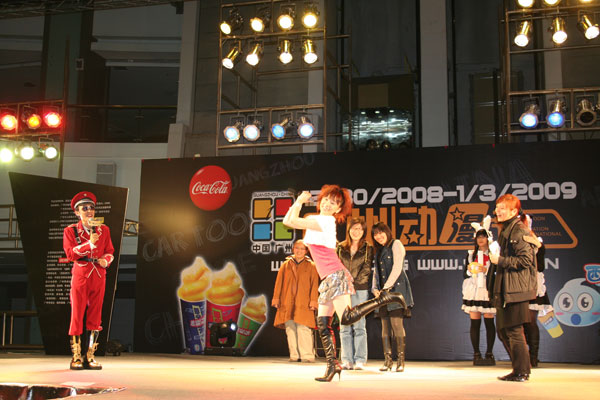 12月30日上午,几经波折的2008广州(国际)动漫节在天汇城负三层隆重开幕了。由于开幕时间不是节假日,动漫爱好者不是要上班就是要上学,以至现场人丁单薄,人烟稀少。与以往热闹拥挤的开幕式相比,今天这个开幕式显得有点冷。