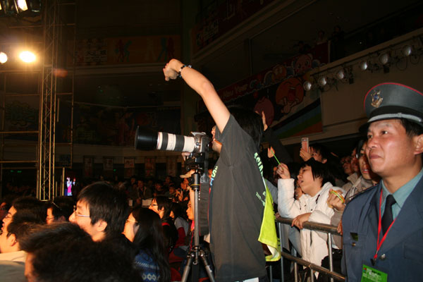 12月31日傍晚6时,我们甫来到天汇城,便感到一股“热浪”扑面而来,只见等待入动漫展场的人龙已排到天汇城门口了,原来他们都是为追星而来——日本红歌星下川美娜的演唱会即将在这里举行。