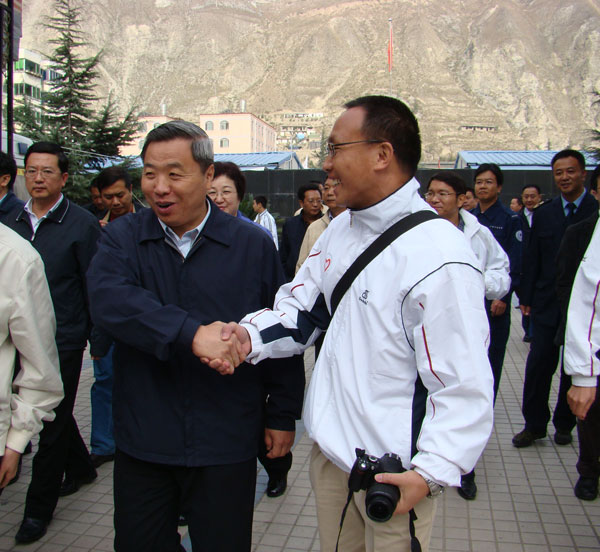 当龙云副省长听说广州团市委的“青春与电影同行”广州青宫志愿放映队队员以“青春与电影同行走进威州”的形式支援威州的精神文化建设,立即对广州青宫志愿放映队黄建成队长进行了慰问。龙云副省长对广州青宫志愿放映队将在今晚到七盘沟板房区放映首场电影表示了高度重视,但同时也对自己要参加西部会议而不能参与首场放映表示惋惜。龙云副省长握住黄队长的手深切的说:“如果不是要赶去开会,我一定会去。下次有机会再来,一定抽时间去看你们的放映。”