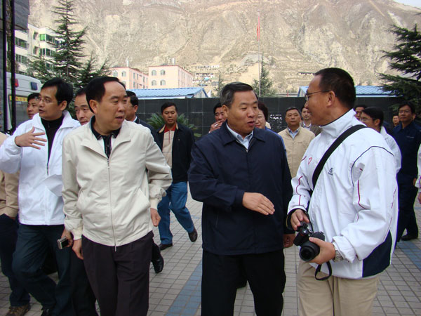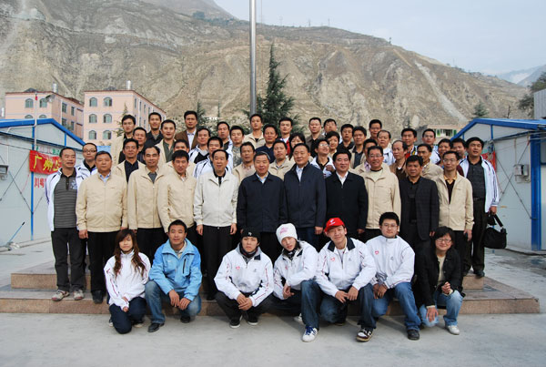 当龙云副省长步入前线工作组的板房时,传来了志愿者和一线工作人员兴奋的掌声。龙云副省长和广州对口支援威州志愿服务队队长李海以及现场工作人员一一握手后,细心的听取工作组和志愿者的援建工作汇报,并对工作成绩给予了高度的赞扬。龙云副省长非常关心志愿者和一线工作人员的生活条件、身体健康等问题,反复强调大家要注意身体。走出板房区后,龙云副省长和全体工作人员、志愿者等一起合影留念,并对广州对口支援威州的志愿者们用粤语亲切的说:“后生仔,辛苦晒!”