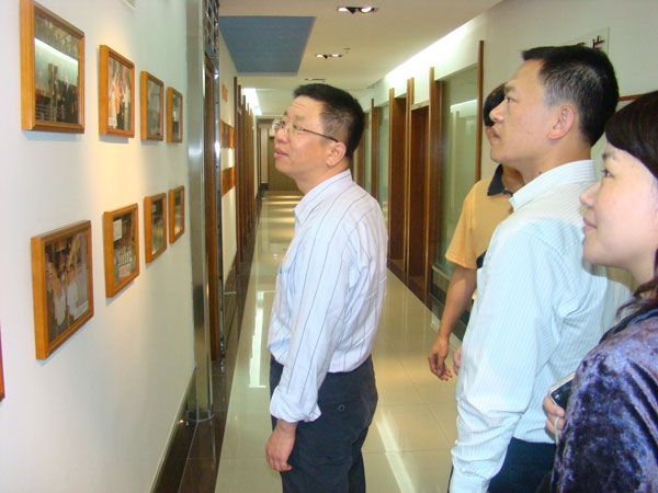 在简单介绍了青宫的历史和现在的发展思路后,引领李文革秘书长一行观看青宫的历史图片展,青宫专注于公益事业及竭力为青少年服务的办宫宗旨,得到李文革秘书长的认同。随后,在四楼的学舞堂介绍了青宫开展街舞、民族舞和体育舞蹈培训的教育成果;在二楼的动漫培训基地观看了无纸动画的制作过程后,李秘书长认为值得推广;听了李约坚副主任介绍广州学生网的运作情况、建网成果及庞大的会员数字后,李秘书长竖起了大拇指夸奖。在青年婚姻介绍所里,李秘书长详细询问和了解了婚介所的工作范畴及成功率,他认为婚介所坚持诚信原则,规范地开展婚介服务,难能可贵。