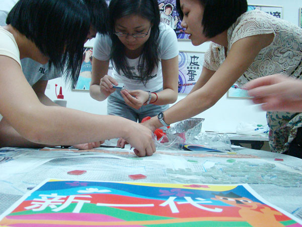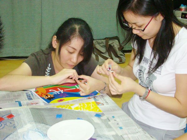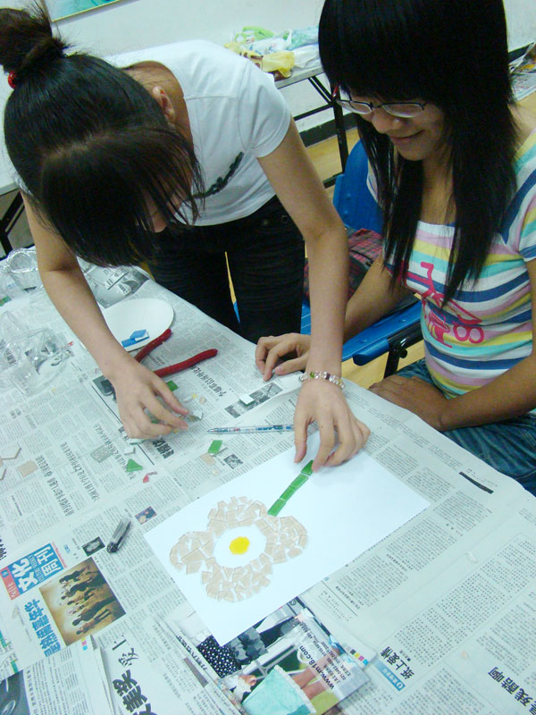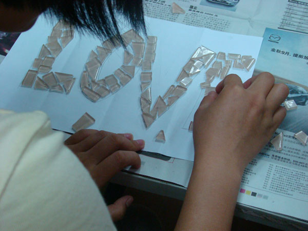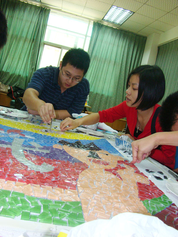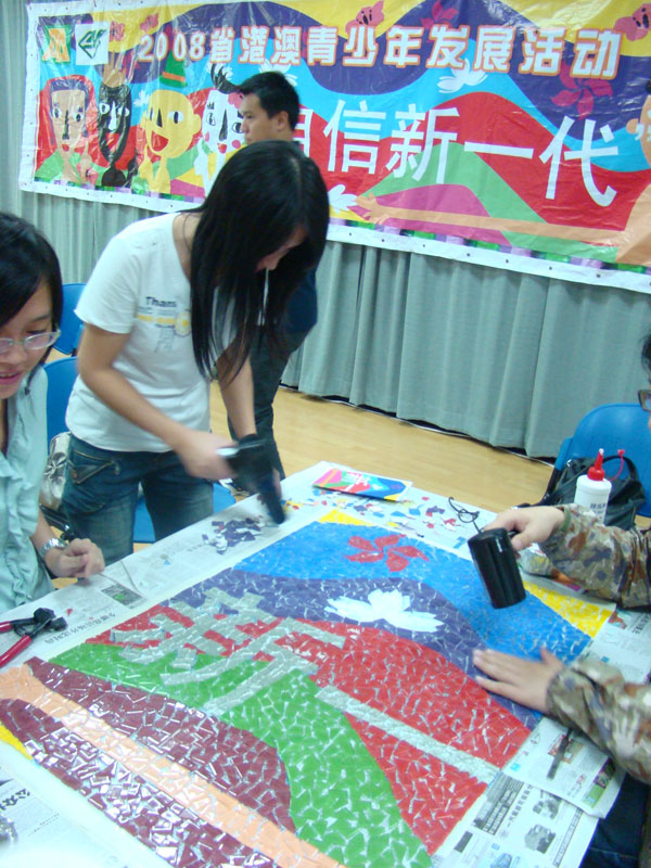 由于场地及制作马赛克的工具有限,所以参加这项活动的名额只有10个。但活动信息在网上发布后,不少同学纷纷打电话来报名,更有同学为了参加这次活动而将在黄金周回家或出游的计划推迟,报名人数大大超出预计。最后,实践中心分别在广州城市职业学院、广东司法警官职业学院、广州铁路职业技术学院和广州市电视广播大学四所院校中选出14位热心公益并曾在志愿工作方面受到表彰的优秀志愿者作为代表,参加这次为期两天的活动。