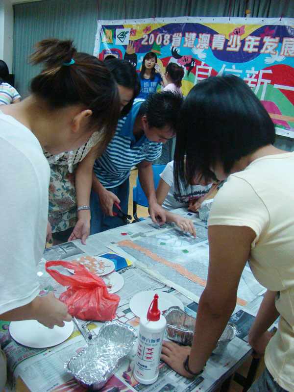 9月28日下午,青宫迎来香港游乐场协会的友人们。在马赛克拼图导师的指导下,青宫社会实践指导中心的志愿者们开始了“省港澳‘自信新一代’青少年发展系列活动”之大型马赛克的制作。