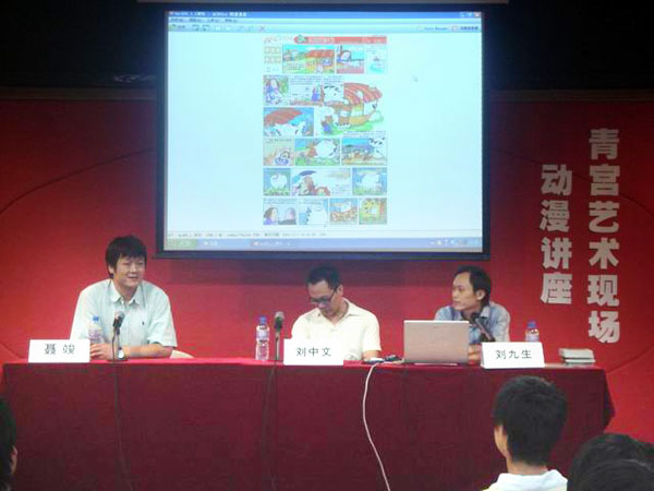 在讲座上,聂竣老师和大家分享了他多年来创作漫画的心得和乐趣,鼓励青少年朋友们热爱漫画并享受其中的乐趣。刘中文老师从商业动漫的角度来分析动漫行业,他希望青少年朋友能够坚持手绘漫画。刘九生老师则从儿童漫画的角度表示动漫的多样性。讲座后,青少年动漫爱好者积极向主讲老师提问,老师们现场回答了怎样学习漫画、动漫考级和漫画行业的发展及就业等问题。讲座的主讲者都认为动漫行业是一个朝阳行业,有着良好的前景,希望广大喜爱动漫的青少年朋友为自己的梦想而努力。