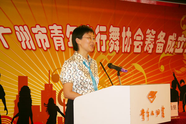 青宫领导在会上发表讲话,他希望流行舞协会能健康发展下去,为青少年开展更多的流行舞活动。最后团市委副书记童慧讲话,她认为流行舞协会的成立能为广州青少年提供有益身心的活动,祝愿流行舞协会越办越红火。