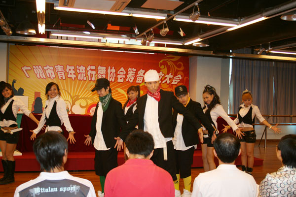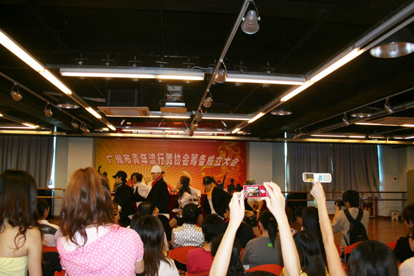 团市委副书记童慧、青宫副主任李约坚以及广州市民政局代表刘国俭、广州市民间组织管理局代表黄少碧等出席了成立大会,到会的还有流行舞协会的55位会员代表。在会上,首先由广州市民政局代表刘国俭宣读《关于广州市流行舞协会申请筹备成立的批复》,然后由协会筹备组组长黄志枫作筹备组工作报告及《广州市流行舞协会章程》的起草说明,所有会员举手同意通过《广州市流行舞协会章程》。随后进行理事会选举会议,选举会长、副会长、秘书长。这期间,会员们为大家准备了一场精彩的街舞表演,活泼激扬的流行音乐、动感张狂的舞蹈把气氛推至最高点,在场的会员还争相拍照留念,记下这值得庆祝的时刻。表演结束后宣布会长、副会长、秘书长名单,分别由邓颖任会长,谢志威和梅莉娜任副会长,黄志枫任秘书长。