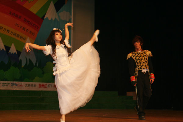 把嘉年华推向最高潮的是原创搞笑话剧《大话4U》。以插科打诨式的剧情,以嘻笑怒骂的台词回顾了GZ4U广州学生网如何从草创到艰难地成长到今天的发展壮大的历程,以自嘲的对白推介网站的栏目。剧情虽然很市井,但并不粗俗;有一点情色,但绝不色情,极尽搞笑之能事,引起全场一次又一次的“爆笑”。台上越是“自踩”(自贬),台下就越开心,那种只可意会不可言说的共鸣,令台上台下融为一体……