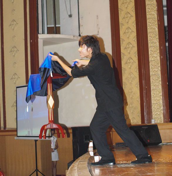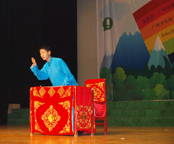 正所谓“不是猛龙不过江”,若非身怀几度“散手”(绝活),又怎会“抛”身出来献艺?!不说不知道,这群演艺达人个个都很“把炮”(厉害)的,有号称广州“少年古王”的“讲古佬”彭嘉志,有广州潮仔潮女最追捧的京剧戏迷尤海波,有广州最红的LOLITA公主,有广州最型的双截棍表演队,有广州最HIT的街舞队,有广州最正(正点)的无伴奏表演队……他们在观众狂热的支持叫喊声中信心“爆栅”地登台亮相,洒脱不羁地表演,整台演出火花四溅,高潮迭起。