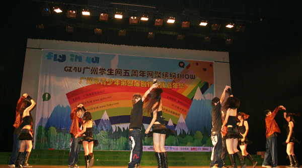 由青宫主办、GZ4U广州学生网承办的广州市青少年第四届创作实践嘉年华暨GZ4U广州学生网五周年网聚活动于7月27日下午在广联礼堂举行。那天礼堂里的1200多个座位几近座无虚席,超过100位能唱、能弹、能跳的型男索女一点也不欺场,卖力地使出自己的看家本领,给足观众4个小时的视觉、听觉享受,而且连连给人意想不到的惊喜,意想不到的狂野,意想不到的正宗,意想不到的搞笑。