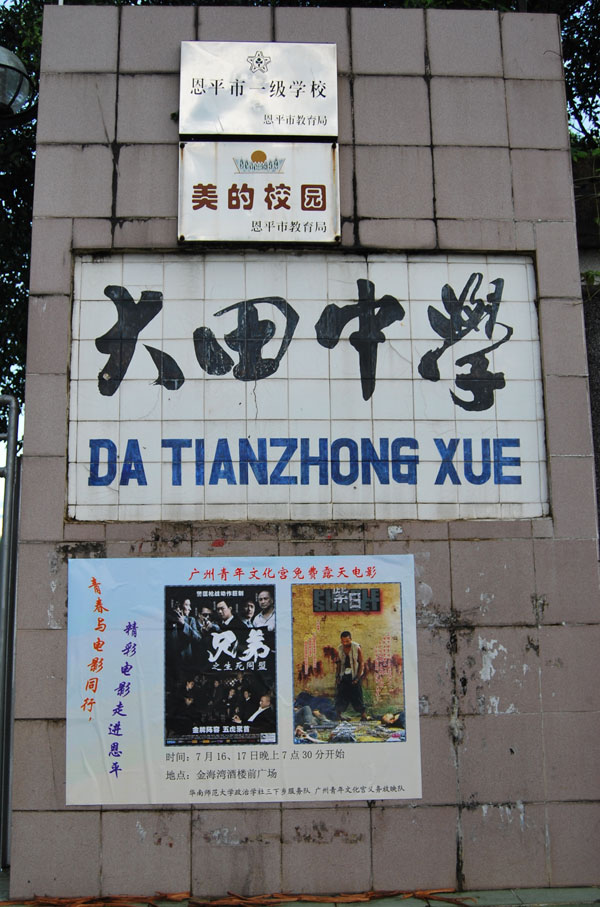 7月16—17日,我们和青宫志愿者放映队带着热情走进恩平市大田镇,在大田镇的金海湾酒楼前广场放映了《大灌篮》和《紫日》。在放映前下了场大雨,停雨后,义务放映队员匆匆吃了晚饭,就马上就到现场开始准备了。放映队员们行动熟练迅速,态度认真诚恳,并且婉言拒绝了我们服务队的帮助,甚至还抽空帮助我们挂横幅和维持现场秩序。