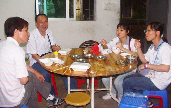 我作为政治学社“三下乡”服务队的一员,与青宫放映队的几位叔叔共事共处两个晚上,深深被他们的精神所感动。他们带着大批放映设备,长途跋涉来到我们下乡服务队的驻扎地——恩平市大田镇,还没来得及休息,就要马上准备放映电影的事宜。我们的放映地在一家酒楼前的空地上,场地简陋,在这个地方挂银幕等设备具有相当的难度,但是他们有条不紊地干开了,挂银幕、调试音响一下子就完成了,我们不得不感叹他们的团队协作精神,这也是我们团队值得向他们学习的地方。正是因为这样,两个晚上的放映活动才能顺利进行。看到青宫几位叔叔在放映过程中脸上流露的笑容,我明白到帮助别人原来是一件快乐的事情。