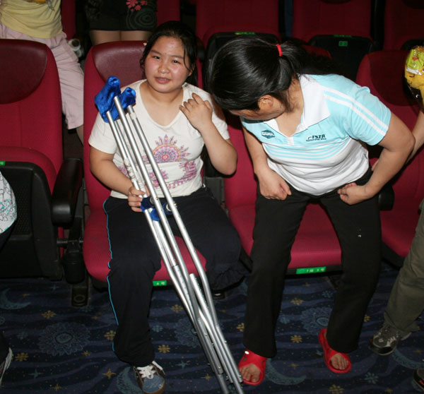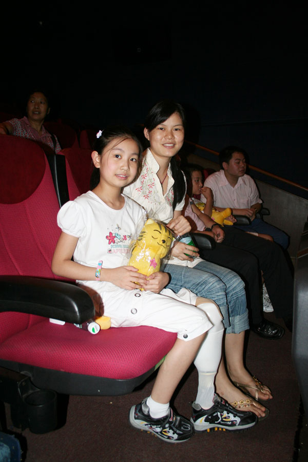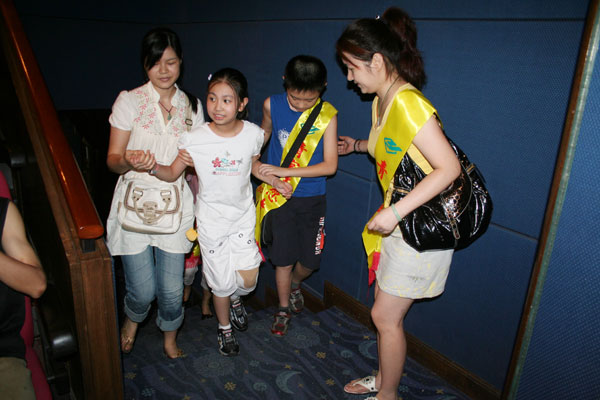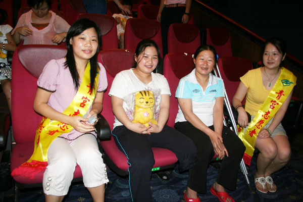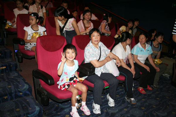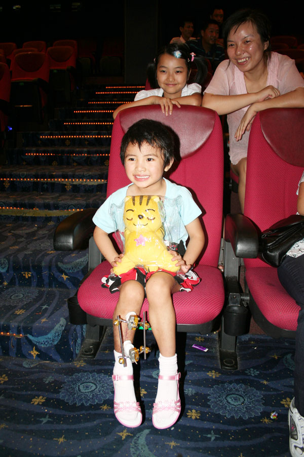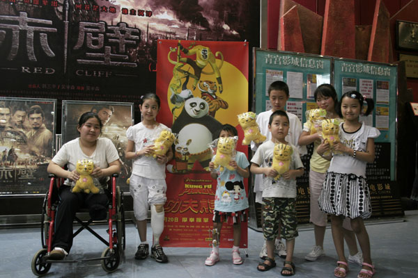 广州作为青川的对口赈灾点,市政府不仅派出大批救援队伍前往灾区第一线,同时也接收来自灾区的伤病员进行治疗。为了让在广州接受康复训练与治疗的四川小伤员能够尽早走出大地震的心灵阴霾,释放内心的恐惧,尽早恢复正常的生活,7月13日,青宫与市残联取得联系,特别邀请多名四川来穗治疗的小伤员及其家人一起到青宫电影城观看动画片《功夫熊猫》。