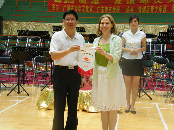 美国纽约州立大学学生管乐团是一支经常被美国的学校、政府、社团邀请参加各种音乐交流演出,曾与不少世界著名指挥、独奏家、作曲家合作的专业水平高、凝聚力强、演出经验丰富的管乐团,这次该乐团在乐团的音乐总监、世界三大管乐指挥家之一保拉 ?贺尔金博士的带队下,来到广州作管乐交流联谊活动。