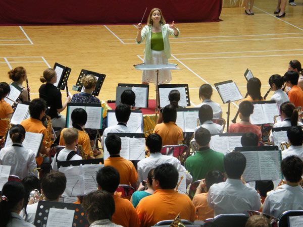 美国纽约州立大学学生管乐团在保拉 ?贺尔金博士的指挥棒下,用一流的演奏技艺演奏了《维亚纳音乐厅鼓号曲》、《拍斯卡尼亚曲式》、《军民联欢》等八首乐曲,每一曲都风格不同,每一曲都有亮点,每一曲都有故事,令人不愿那音符停下来,不断地在耳边回荡。