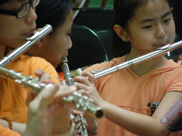 随后,一支支昂扬的管乐曲,把我们带进交响乐的世界。虽然四个乐团由于组建的时间长短不同,水平有点参差,但观众们很享受他们对音乐的那份认真、执著和热诚,一曲奏罢,掌声热烈。