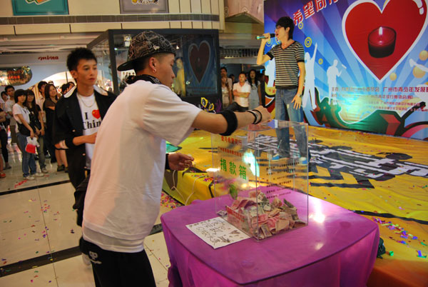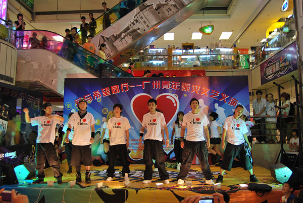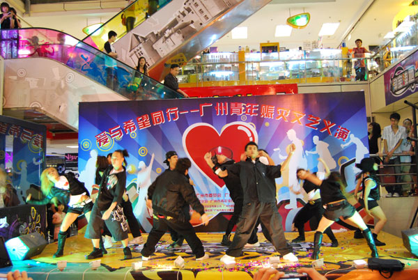 当获悉青年文化宫准备举办“爱与希望同行——广州青年赈灾文艺义演”活动,我向ALL STEPS街舞团舞蹈艺员们提出参加演出,并打算重新编排个舞蹈表达我们的心情。在很短的时间内,大家就把舞蹈完成了。我看到舞蹈艺员们比平常都要努力、认真地排演,从他们的汗水和表情可以看出,他们的心情和我一样沉痛。