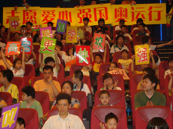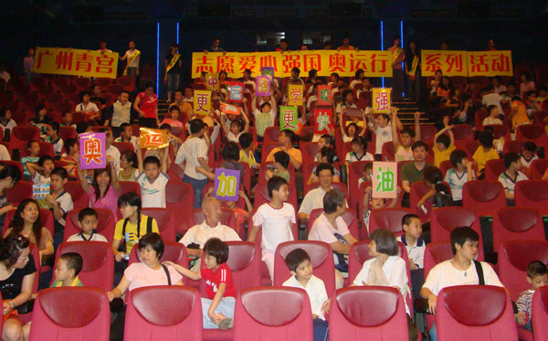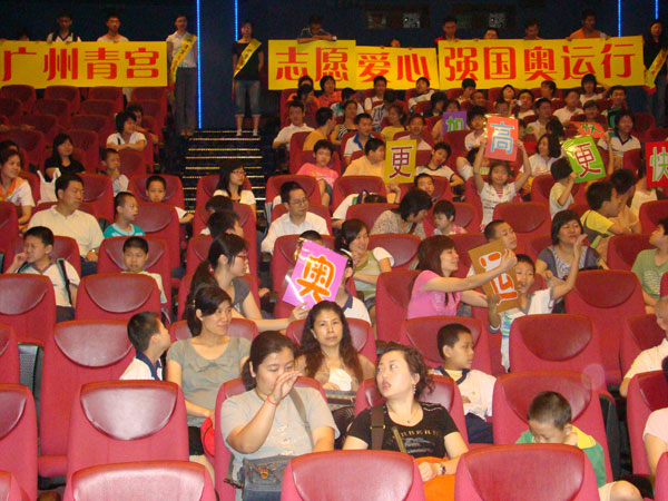 活动的“开篇”是在“5.18”全国助残日前夕的5月16日,邀请越秀区启智学校的250多名天真烂漫的特殊儿童,来青宫电影城观看了电影《买买提的2008》,让这些孩子也能分享到北京奥运的喜悦。