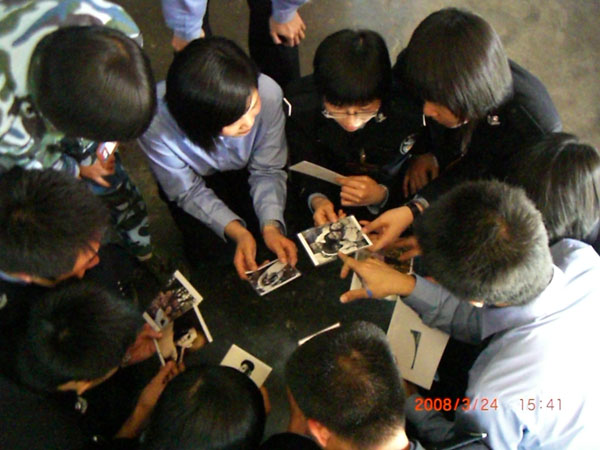我们刚到学院门口,已见到有学生在学校门口等我们,他们帮忙把活动所用的物资搬到课室。作为第一次参加观摩的工作人员,我看到30双期盼的眼睛,顿时感动和振奋。