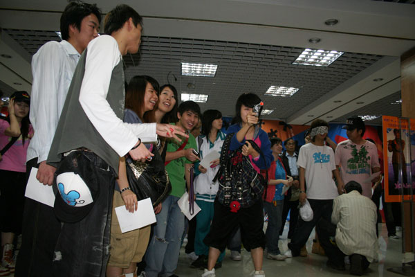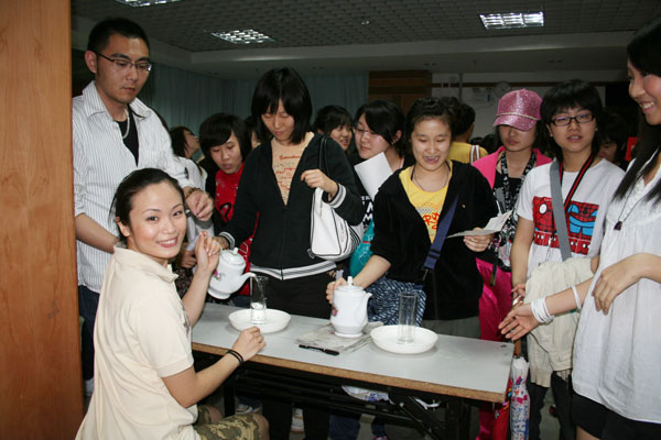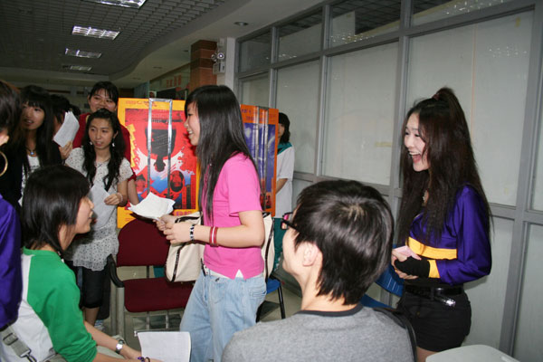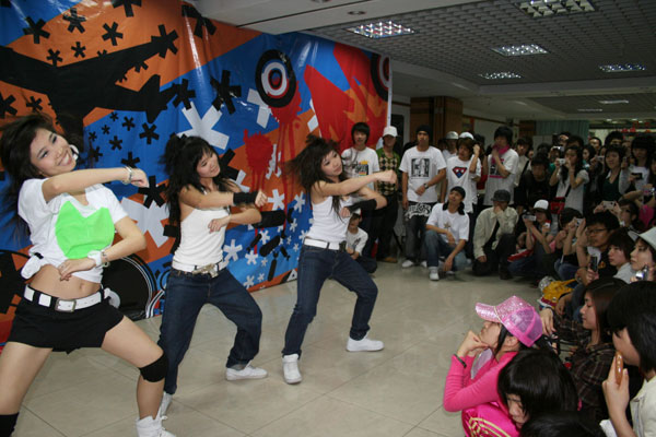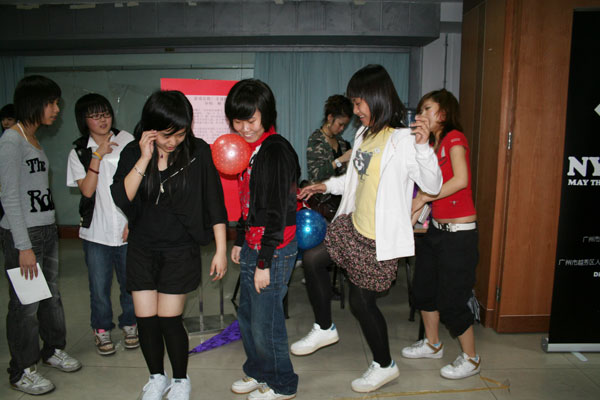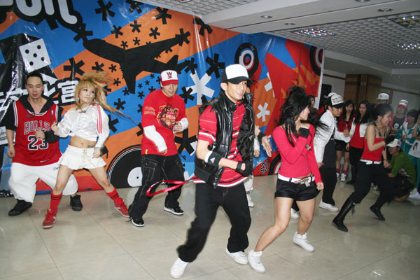 参加同乐日活动的学员大概有300人左右,在导师的新舞发布会后,他们的情绪一下子高涨起来,喊着自己喜欢的导师的名字,音乐声、喊叫声、跳舞的和观舞的完全融合在一起了,闪光灯、快门声始起彼伏。导师们和Dancer轮番在小得可怜的“舞台”上激情起舞, “一滴你好靓啊!”不知从哪里冒出这句话来,正在狂舞的一滴听见后,边跳边回答:“多谢,我都觉得啊!”“Denny,你好像阿Rain啊!”学员与导师真正实现零距离接触。