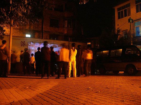 10日下午3点,我们放映队三名队员——司机沛哥、放映员万叔和我从青宫出发,直奔目的地增城市,下午5点就到达增城市中新镇。我们受到当地团委书记的热情招待,吃过晚饭、稍作休息之后,我们就来到当晚放映的地点准备放映。