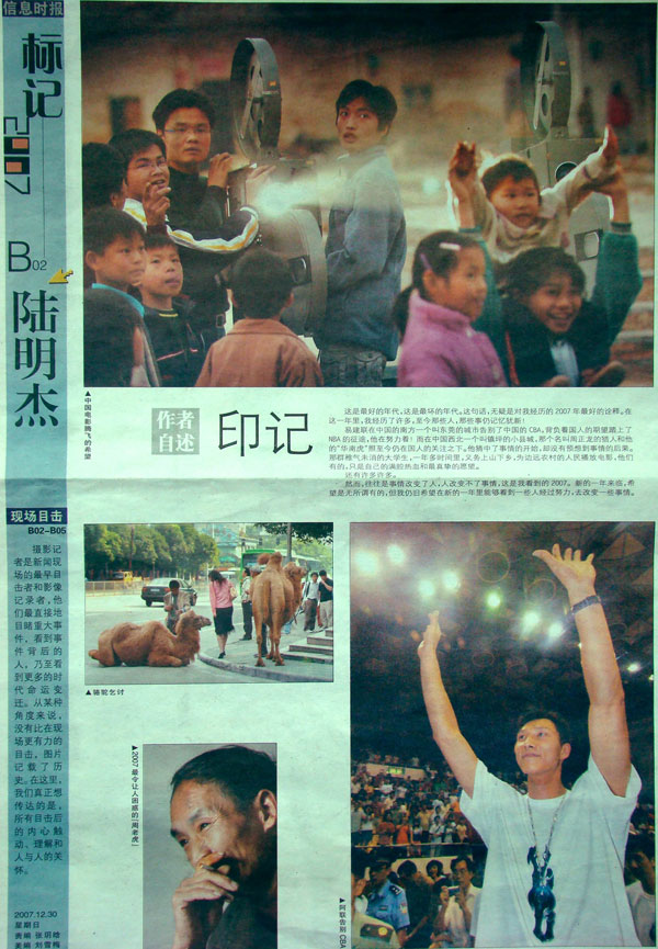 2007年12月30日的《信息时报》做了一个主题为《标记2007》的年度回顾专辑,用一张张记者的现场目击照片,用一个个引起人们不同感慨的瞬间,为2007年作证。