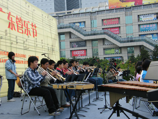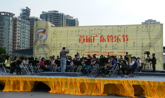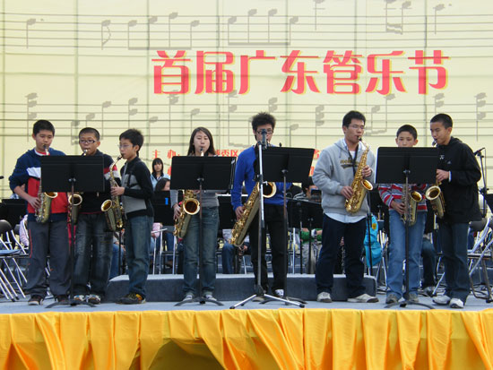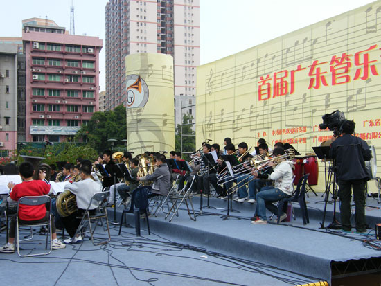 参加这次展演的共有11个团队,主要来自广州、深圳的中小学,青年管乐团作压轴演出,表演了《1812序曲》、《轻骑兵序曲》等经典曲目。演出虽然受到了天气的影响,但团员们的演奏水平丝毫没有降低,敬业精神一点也不逊色于专业演员。通过这样的活动不但可以丰富团员们的演出经验,而且能够锻炼他们的适应能力和心理素质。