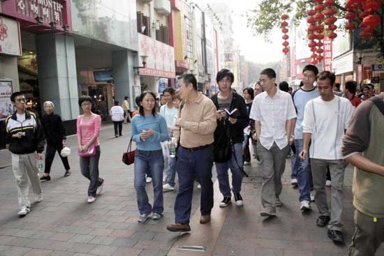 假日的广州北京路总是游人如鲫。11月17日周六上午10时左右,在人来人往的北京路上有一群学生特别引人注目,他们的眼睛的聚焦点不在那些装潢炫目的专卖店,而是透过巨型玻璃地面,窥探脚下的千年古道,勾沉羊城2000多年的历史。