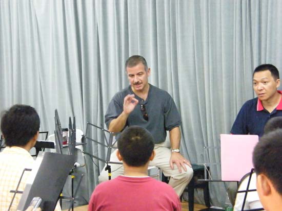 在和Dr.George Matthew见面前,张老师就跟我们打了“底”,Dr.George Matthew是美国职业管弦乐团的指挥,像我们这么年轻的业余管乐团是很少指导作的,因此是一个很难得的机会。