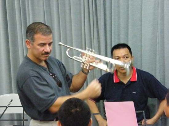 让我印象最深刻的是第二天的小号声部课。在这节声部课里,Dr.George Matthew所讲解的气息,是吹奏管乐器的人最不会用也最容易用错的地方。他教了我们一个很简单的方法,就让我们能体会到吹管乐时的气息用得对是怎样的感觉,用得不对又是怎样的感觉。他还教会我们吹奏前的“三步曲”,真是收益良多。