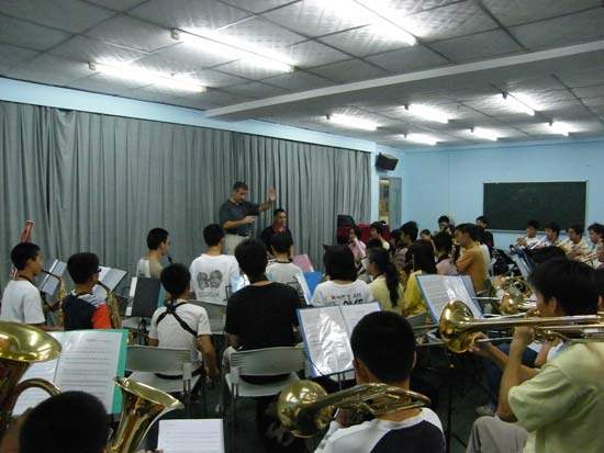 27日那晚的排练,简直让我大开眼界。虽然乐团的状态不是很好,但Dr.George Matthew依然很用心地教我们。从一开始的热身练习到后来的曲目排练,每一个环节都讲解得很清楚。他的每一个指挥动作都很细腻,在整首乐曲里,哪个声部在哪里应该突现,哪个声部在哪里应该柔和,他指挥得毫不迷糊。在我眼中,他简直是个钢琴手,而我们就是他手下的黑白琴键,他让我们该欢快时欢快,该柔和时柔和,该抒情时抒情。Dr.George Matthew的指挥,真有魅力!