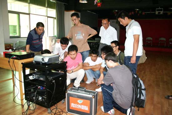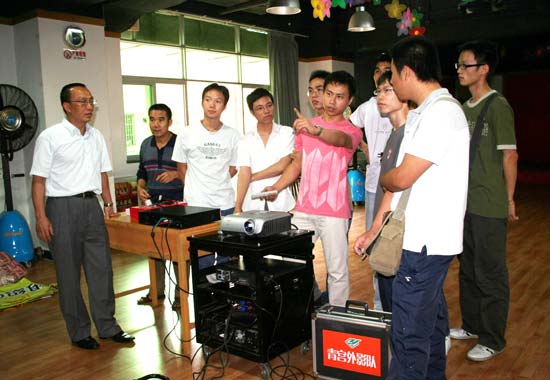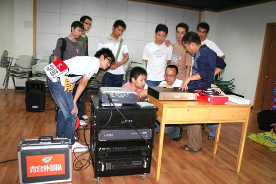 与传统的放映不同,M300数字电影播放器着重于接线、开机及摇控器的技术使用。老师从接电、声音、图像、开机顺序、使用功放的习惯及放映过程中摇控器的每一个功能键的使用等,都进行了详细的讲解,并由张自坚师傅示范操作,在现场为学生解答在技术操作上的疑问。培训结束后,“青春与电影同行”志愿者放映队又马上出发,去南沙区珠江管理区第三区进行放映。