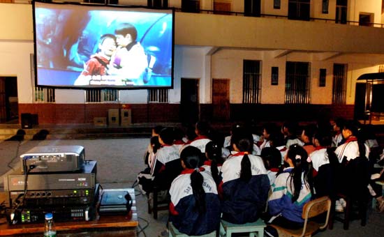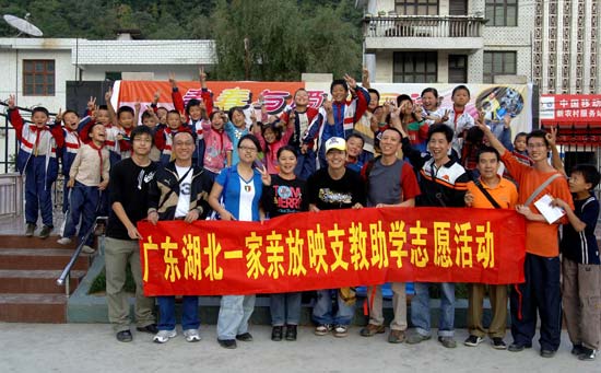 当晚,青宫义志愿者放映队为学生和乡民们放映了《勇闯天下》、《天下无贼》两部影片。作为这个放映队的成员之一,我对对这个放映队很有感情,从这个团队身上,我体会了一种真正的志愿者精神。放映队员经常要坐数个小时甚至更长时间的车程,才到放映地点开展放映活动,用不辞劳苦来形容一点也不过分。当然,这次来湖北作跨省放映属首次。扩大放映队的服务范围,这应该是放映队的新的举措。