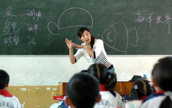前一刻还是“学生”,下一刻已是“老师”了。10:30—12:00我又成了三、四年级学生的老师。这帮学生比昨天的小,因此较为调皮些,领悟力也较低,但这难不了我。为此我采用少用专业术语、多用动作演示的教学方法,果然奏效。临下课时,我还跟他们玩起老鹰抓小鸡、网鱼的游戏。晚上,我们给学生放映《海洋朋友》,坐在学生中间和学生们一起看电影的我们,内心涌起不舍之情——这是我们的志愿活动的最后一个活动啊。