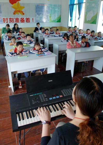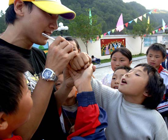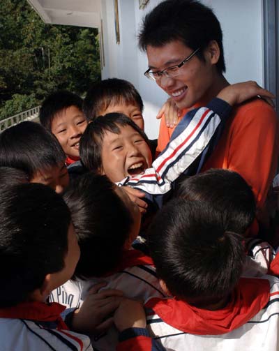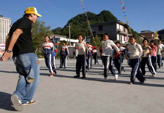 仪式后,各项志愿活动有序地开展。下午我开始了我的为人师表“生涯”——教五、六年级的学生拳术,传授擒敌拳的基本拳法及相关的解脱术。开始时我是有些紧张的,毕竟这是我第一次当教师。我演示了一遍擒敌拳后,可能由于新鲜吧,学生们的学习兴趣一下子就提起来了。接着我叫口号、解说和分解动作,学生们都很认真,无论擒敌拳还是解脱术一下子就学会了,虽然有些细节还未能很好地把握。不知不觉一个半小时过去了,下课铃声响起,我的第一堂支教课也结束了。但下课后学生们仍意犹未尽,围着我问东问西,这又拉近了我们之间的距离。山区的孩子太需要我们的关心和帮助,看着他们,我想到自己的童年,真的比他们幸福多了,这让我学会珍惜。