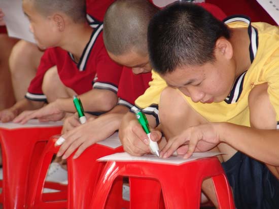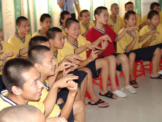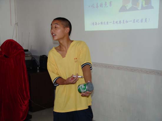 我们今天是给学员带来一堂“珍爱生命、远离毒品”的教育课程,希望通过这个课程使他们认识到毒品的危害,拒绝毒品进入自己的生活。参加课程的50名学员多数是因偷抢而被送到这里接受教育的,年龄介于12—18岁,清一色男孩子。也许他们在社会上经历了太多复杂的人与事,因此少了幼稚和朝气,明显感觉他们用不羁来掩饰不安,但青涩难脱。
