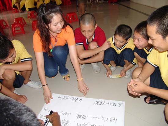 在填写活动反馈问卷时,我发现他们有些人不识字,我们不希望他们由于不识字而降低参与度或产生自卑,于是叫他们口述,我们来执笔,借机和他们攀谈起来。其实他们非常希望被人关心,需要可以倾诉的人。有个学员说:“我们很想你们能够经常来。我们很多人都没有幸福的家,进来这里就像一个家一样,虽然我很快出去了,但是希望其他人也能够有参与这样的活动的机会。”不少学员在离开时频频向我们说“拜拜”。