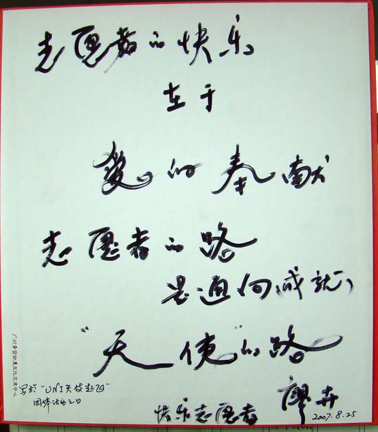似乎是老天的刻意安排,为迎接“赵广军生命热线志愿者服务队”这群可爱的天使们,8月25日下午,一场突来的狂风暴雨把“UNI天使起飞”活动的举办地点——北京路冲洗得格外干净靓丽。