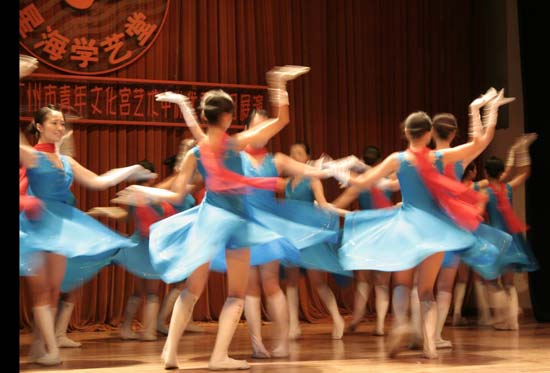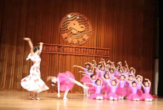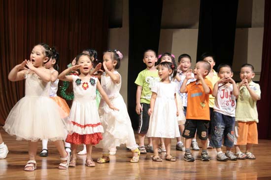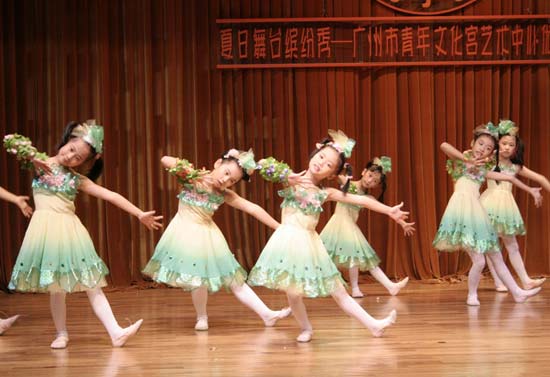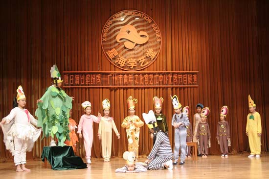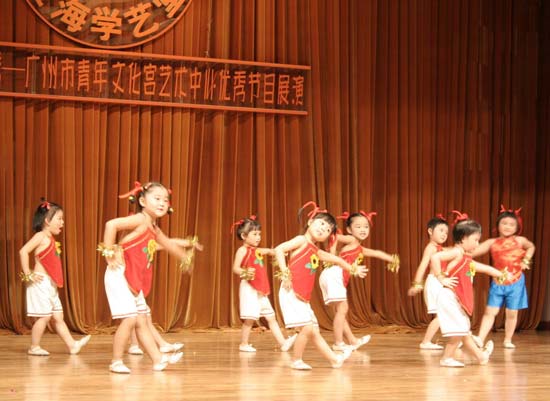 这群艺术幼苗是青宫艺术培训中心舞蹈班、音乐班、声乐班、语言表演艺术班的学员,这台演出,既是“星海学艺堂——夏日舞台缤纷秀”的其中一台节目,也是艺术中心2007年度学员培训的汇报演出,因此,虽然是公开售票,票价30元,但现场仍座无虚席,小演员们的父母、爷爷、奶奶甚至亲朋好友济济一堂,齐齐捧场。