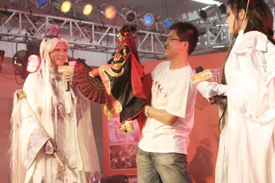 既然是城中“潮事”,“潮人”们怎会不亮相登场?!当然,除了动漫“潮人”外,团省委宣传部长向欣、团市委副书记李洁明、青宫领导以及越秀区有关部门的领导都“潮”了一回,莅临现场主持动漫节的开幕式。虽然跟那些粉墨登场的COSPLAYER、LOLITA相比,他们“稍逊风骚”,但他们的“压阵”,是主持青少年工作的政府机构对开展有益青少年身心健康的动漫活动的支持的体现。