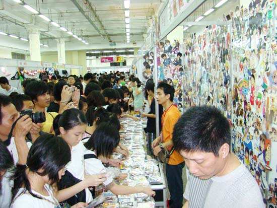 在人气极盛的展览馆里,此次动漫节的吉祥物——网络当红肖像“洋葱头”随处可见,向人们展露它很Q的笑容,它无疑成为这次动漫节当仁不让的第一“潮物”。而台湾布袋戏偶相信会在本次动漫节之后,成为动漫迷继人偶娃娃之后的又一个新的“潮物”。