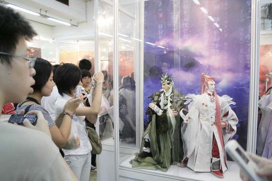 来自台湾的霹雳多媒体有限公司与广州霹雳后援会在展览馆里展出了26尊造工精细、活灵活现的布袋戏偶,“谋杀”了众多布袋戏迷数码机记忆卡的空间;而每天举行一场的布袋戏操偶表演,更成为整个会场的聚集点,木偶的每一个转身、每一次的举手投足都惹来动漫迷的震耳欲聋的尖叫……布袋戏偶想不成为“潮物”?难!