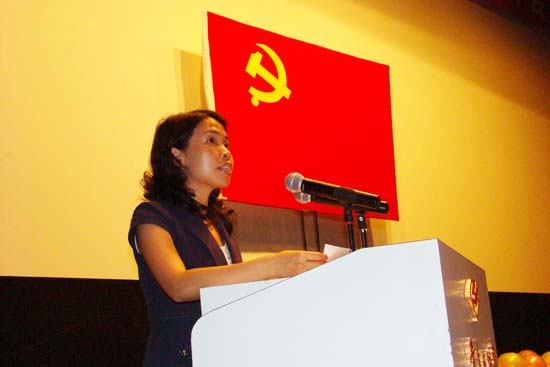 大会在激昂的《国歌》中拉开了序幕。会上,青宫领导代表团市委机关党委宣读了表彰决定,青宫党总支部被评为团市委机关系统先进党总支部,屠宪治被评为优秀党务工作者,何少丽、吴沛玲被评为优秀共产党员。会上,青宫新党员陈超然、方杏婵与系统其他新党员一起向党旗宣誓。