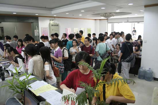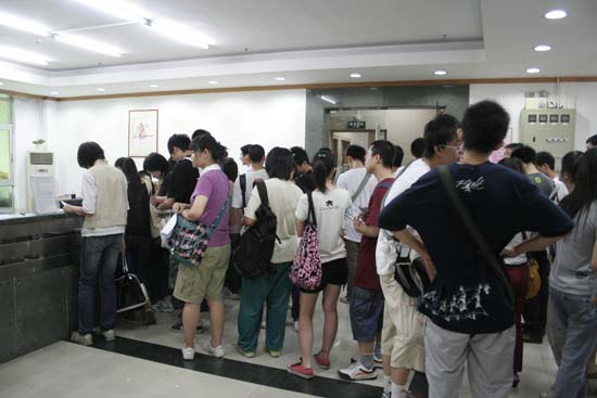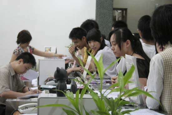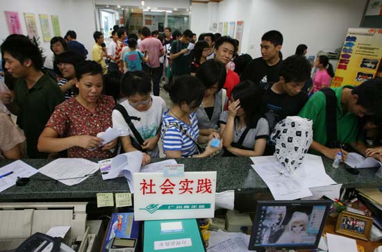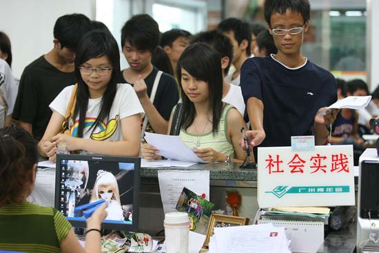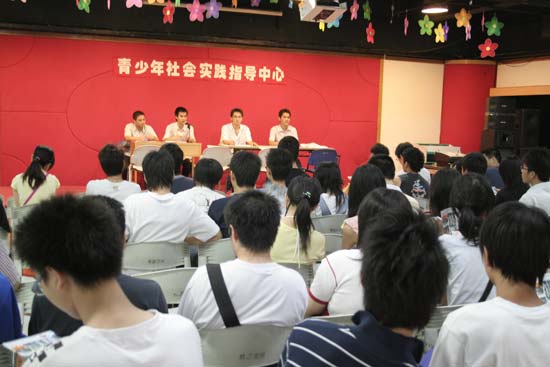 自上周《广州日报》、《羊城晚报》、《南方都市报》、《信息时报》等报纸报道了我实践中心为高考毕业生开设专场面试会的消息后,学生报名火爆,导致青宫二楼青年中心的大堂每天一开门就排起了长长的人龙,广东珠江电视台的《630新闻》、《广州电视台G4》还专门对此进行了采访。