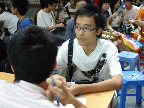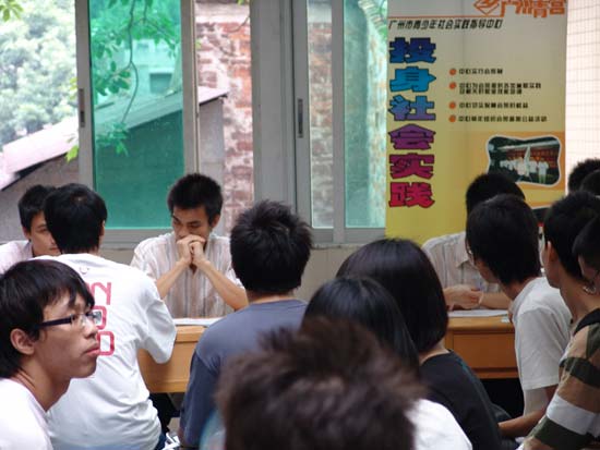 6月14日下午,广州市青年文化宫二楼青年中心门庭若市,广州市社会实践指导中心举办的“大河马优惠卡”实践推销员面试会吸引了一批特殊的社会实践者——2007年高考毕业生。